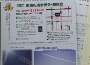 さて、3月下旬にお届けした関東松濤会会誌「SAKAS第17号」はご覧になりいかがでしたか。同封の案内状でお知らせのとおり、来る5月24日(日)東京大手町サンケイプラザにて第34回総会・懇親会を開催いたします。